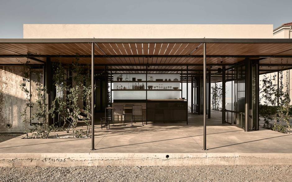 Dexamenes is located on Kourouta Beach which is a beautiful stretch of coastline in the western Peloponnese. Its history dates back to the “Era of Currents”, although it was left relatively untouched since the 1920’s. Athen’s based K-Studio created a design that successfully respected its strong history and beauty of the site while breathing new life into the space. The result is a modern, elegant and minimalist hotel with a raw, brutal and industrial aesthetic. Respecting the existing buildings by leaving them relatively untouched, K-Studio updated the site using concrete, steel, timber and glass.